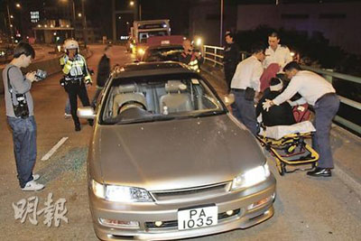 中新網(wǎng)1月22日電 據(jù)香港《明報》報道,香港三名猖狂惡煞,21日凌晨在灣仔行車天橋上高速飛車將仇家所駕私家車強(qiáng)行截停,用鐵錘敲爆車窗,遇襲司機(jī)慌亂倒車欲逃,卻撞及尾隨的士,無路可退下慘遭撲穿頭,血流滿面,車內(nèi)一個放有現(xiàn)金的手袋也被搶去,惡煞逃去無蹤。