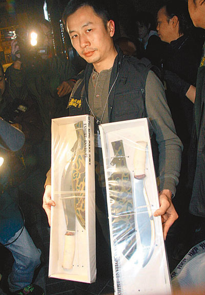 為防黑幫再作街頭火拼,油尖警區(qū)反黑組先發(fā)制人,27日凌晨1時(shí)許根據(jù)線報(bào),掩至漆咸道南一間私人會(huì)所搜查,搗破黑幫武器庫(kù),檢獲兩柄染有血漬開(kāi)山刀及三支長(zhǎng)電筒,以涉嫌藏有攻擊性武器罪拘捕何姓、24歲會(huì)所負(fù)責(zé)人,并會(huì)檢驗(yàn)利刀有否涉及血案。
