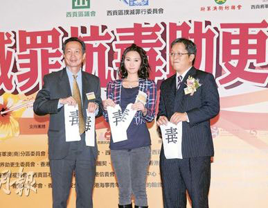 周凱盈出席西貢區(qū)滅罪抗毒助更生嘉年華,有“翻版阿Sa”之稱的她,早前藏毒罪成,她承諾改過自新,并以“更生人士”身份向市民呼吁珍惜生命,遠(yuǎn)離毒品;顒(dòng)中,周凱盈撕印有“毒”字的紙張,以示抗毒,她更公開向市民及傳媒承諾,不會(huì)再接觸毒品。