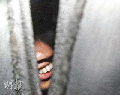 此時,探員在陳宅內(nèi)調(diào)查已近3小時,6時40分,陳振聰被捕帶返警署。一輛沖鋒車率先駛出大閘開路,尾隨一輛深藍色警方客貨車,只見車身兩邊與后車窗俱掛上布簾,傳媒包圍爭攝車內(nèi)情況,黑暗的車廂內(nèi)乍現(xiàn)一排潔白的牙齒,正是陳振聰?shù)恼信啤八娜f”笑容。