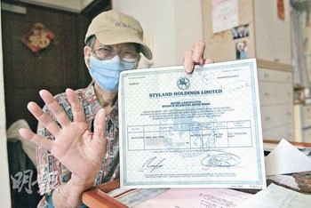 陳婆婆現(xiàn)在說(shuō)話也有困難,但當(dāng)她講述受頑疾折磨經(jīng)過(guò)時(shí),手顫顫指向窗口:“若不是想到這些用棺材本買(mǎi)的股票,我一定會(huì)跳下去!”還幸近年有街坊開(kāi)解,加上參加義工,陳婆婆才得以振作,但她仍念念不忘爭(zhēng)取股票復(fù)牌。
