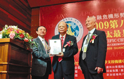 中新網(wǎng)8月4日電 據(jù)香港《文匯報(bào)》報(bào)道,原全國(guó)人大常委、香港金利來(lái)集團(tuán)董事局主席曾憲梓,日前出席2009第八屆亞太華商領(lǐng)袖論壇暨亞太最具社會(huì)責(zé)任感華商領(lǐng)袖頒獎(jiǎng)盛典,并獲大會(huì)頒發(fā)最具責(zé)任感華商領(lǐng)袖大獎(jiǎng)。