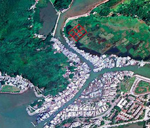 圖:大澳擬修復(fù)的鹽田位置(紅框部分)。(圖片來源:大公報)