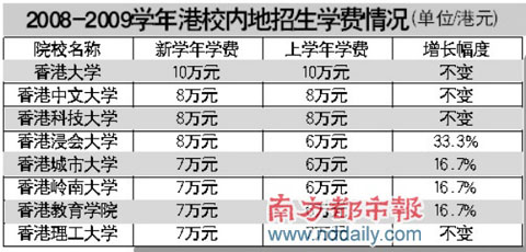 今年準備報考香港高校的學生表示,高校增加學費,可能使報考該校的內(nèi)地考生減少。小陳在羅湖一家中學讀高三,他打算報考香港高校,但目前并未決定具體要考哪一所。小陳說,雖然自己希望能拿全額獎學金,但報考志愿時也會考慮校方的收費標準。他估計,浸會大學的學費上升超過三成,如此大的幅度,難免會迫使像他這種仍然舉棋不定的考生選擇其他高校。