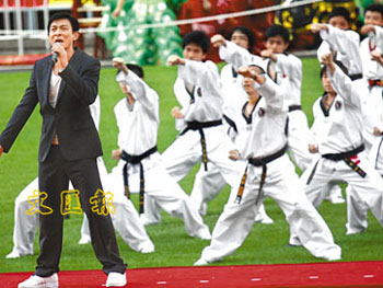 中新網(wǎng)5月5日電 據(jù)香港文匯報(bào)報(bào)道,香港各界青少年迎奧運(yùn)系列活動委員會4日在香港大球場舉行“心系奧運(yùn).中華青年大聯(lián)歡”,劉德華、金培達(dá)、李克勤、方力申等香港藝人及內(nèi)地歌手周筆暢、王宏偉參與演出,陣容相當(dāng)龐大。
