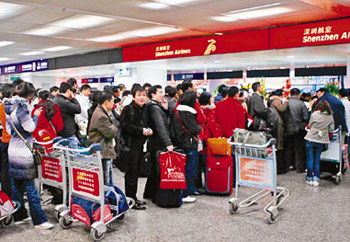 來往香港和內(nèi)地的客流量很大,統(tǒng)計(jì)顯示,深航去年1000多萬旅客中,有近400萬是香港旅客或到香港旅游的人,占了整個(gè)運(yùn)輸量近40%。而深圳機(jī)場(chǎng)提供的數(shù)據(jù)顯示,往香港的內(nèi)地游客中,有1/4是通過深圳機(jī)場(chǎng)中轉(zhuǎn)至香港。同時(shí),經(jīng)過香港中轉(zhuǎn)往內(nèi)地的國(guó)際旅客數(shù)量也非常龐大。