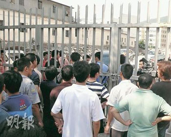 數(shù)百名供貨商20日上門追討貨款,被工人擋在門外。(圖片來(lái)源:明報(bào))