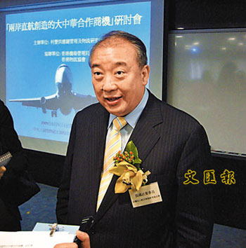張國政指,目前每星期只有逾百班兩岸直航機,對香港的影響不大,但如果航班陸續(xù)增加及可以實行客倉帶貨,則會對香港的航運就造成一定影響。