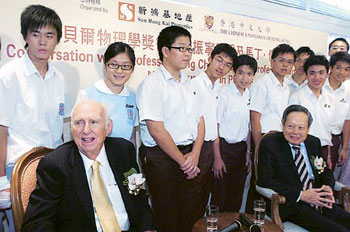 香港中大及新鴻基地產(chǎn)昨日第八度舉辦“新鴻基地產(chǎn)諾貝爾獎得獎學(xué)人杰出講座系列”,今年邀請兩名諾貝爾物理學(xué)獎得主楊振寧和馬丁•佩爾出席講座,與百多名學(xué)生真情對話。有學(xué)生提到香港與美國學(xué)生的分別時,楊振寧指美國與香港的教學(xué)哲學(xué)距離甚大,香港學(xué)生由小學(xué)、中學(xué)開始便會操練數(shù)學(xué),數(shù)學(xué)較理想。他又推薦年輕人閱讀《雙螺旋》,故事講述一名年輕人努力不懈,最后成功發(fā)表“雙螺旋”理論,獲得諾貝爾生物獎。