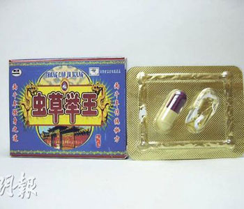 香港衛(wèi)生署呼吁不要服用“蟲草舉王”壯陽(yáng)產(chǎn)品,因它含有無(wú)標(biāo)明的西藥成分,可能引致嚴(yán)重副作用。(圖片來(lái)源:明報(bào))