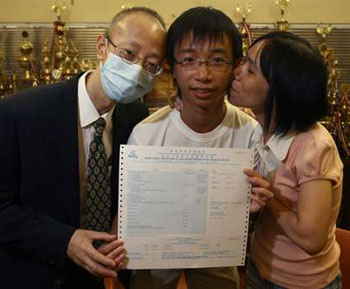 中新網(wǎng)8月5日電 據(jù)香港大公報報道,香港英中名校盡攬2008年中學會考的15名“十優(yōu)狀元”,九龍?zhí)晾硶撼蔀椤按筅A家”,獨占4席。最感人的狀元為皇仁書院的吳國輝,他父親不幸患上血癌,使他深深感受到患病痛苦,因而發(fā)奮讀書,立志行醫(yī)。
