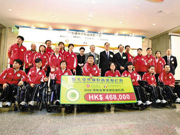 香港殘奧代表團22日出席典禮領(lǐng)取獎金。(圖片來源:文匯報)