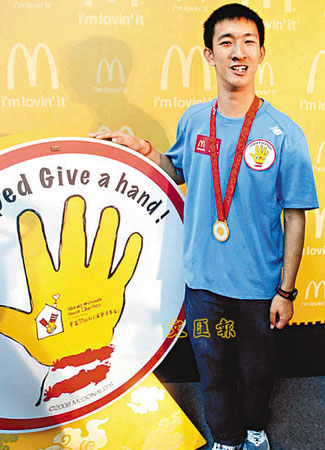 中新網(wǎng)9月27日電 據(jù)香港《文匯報(bào)》報(bào)道,剛在2008殘奧會(huì)勇奪200米金牌兼打破世界紀(jì)錄的香港“神奇小子”蘇樺偉26日化身慈善大使,出席“麥當(dāng)勞叔叔之家慈善基金日”為患病兒童籌款。