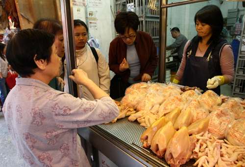 為準備冬至,昨日九龍城、灣仔、銅鑼灣街市一帶人頭涌涌,不少市民已在早上購買餸菜“做冬”。不過受到禽流感影響,香港首次冬至市面沒有活雞供應(yīng),街市雞檔全部改賣冰鮮雞,每只售價約四十五至七十五元。雞檔檔主表示,全日入了大約一百多只冰鮮雞,不過擔(dān)心在目前的經(jīng)濟環(huán)境下,生意難做,因此不敢加價,“現(xiàn)在這種環(huán)境,你再加,人人跑到超市買,自己反而沒生意!