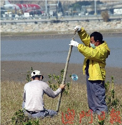 中新網(wǎng)1月19日電 據(jù)澳門日報報道,澳門路氹城固體廢物堆填區(qū)和附近淺灘長期有大批雀鳥棲息覓食,經(jīng)常闖入機場范圍,對航機安全構(gòu)成威脅。民署18日派出工程人員在靠近機場的淺灘架設(shè)八組由光盤組成的反光裝置,測試驅(qū)趕雀鳥效果。