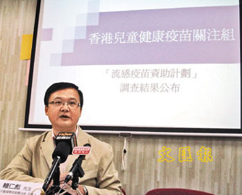 賴仁彪又指,以往重要的疫苗接種,都會(huì)在特區(qū)政府醫(yī)院或診所進(jìn)行,這次的計(jì)劃只能選擇到私家醫(yī)生接種,會(huì)令家長(zhǎng)誤以為流感針“打不打都行”。在金融海嘯下,他建議衛(wèi)生署及醫(yī)管局轄下的診所應(yīng)免費(fèi)為合資格兒童打流感針。