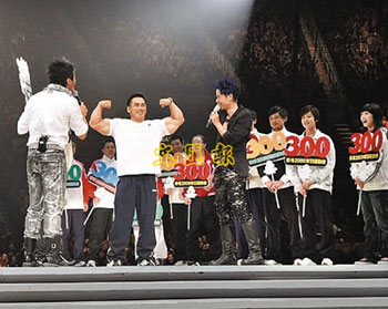 在演唱會(huì)中,眾運(yùn)動(dòng)員獲安排上臺(tái)演唱2009東亞運(yùn)動(dòng)會(huì)主題曲《沖出世界》,同時(shí)“阿麟”“克勤”則大搞氣氛,把東亞運(yùn)300天倒數(shù)活動(dòng)帶上高潮。他們先是邀請(qǐng)亞運(yùn)金牌健美項(xiàng)目“大只佬”陳潤(rùn)韜展示一下粗壯的手臂,即教觀眾嘩嘩大叫,“乒乓孖寶”更表示奪獎(jiǎng)牌是東亞運(yùn)的目標(biāo),譚詠麟又向“黑妹”葉姵延下戰(zhàn)書。