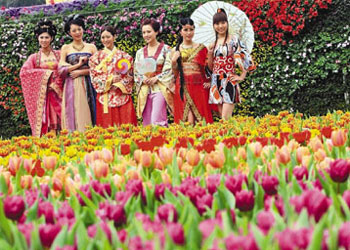 今年花展設(shè)有多個(gè)別致景點(diǎn),包括以超過1.5萬株郁金香鋪設(shè)而成的逾190平方米的圓形花海,主辦方還首次設(shè)立T形觀景花臺(tái),本星期六、日還有兩場(chǎng)以體育服裝及婚紗為主題的時(shí)裝表演。