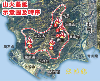 有關(guān)部門發(fā)言人形容,這次山火所到之處都變成焦土,幸虧消防處救火策略成功,設(shè)定7個重點(diǎn)保護(hù)區(qū)救火,包括青山禪寺、山頂?shù)陌l(fā)射站、高壓電纜站和散石灣新村山坡等區(qū)域。