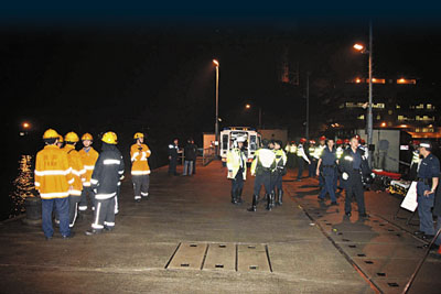 由于仍有十多人失蹤,有關(guān)方面大舉在現(xiàn)場(chǎng)一帶以射燈照明搜救,并出動(dòng)直升機(jī),但因海面有多個(gè)貨柜墮海后漂浮,搜救船只須步步為營(yíng),以防與海上貨柜相撞。最新消息稱,救援人員懷疑失蹤船員被困在沉沒補(bǔ)給船的機(jī)房,今晨零時(shí)已派出大批潛水人員到場(chǎng),下海打撈。
