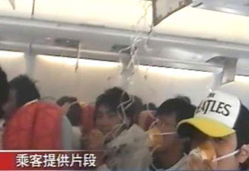 圖:機(jī)艙內(nèi)的氧氣罩彈出供乘客呼吸。(圖片來(lái)源:大公報(bào))