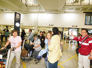 一個32人旅行團14日抵港,他們所乘坐的客機原定早上10時許到達,但最后要延遲至中午12時半抵港。