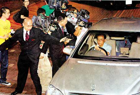 前天,香港高等法院判處郭炳湘申請禁制令敗訴后,郭炳湘架上墨鏡,乘坐七人車離開郭家大宅,他發(fā)現(xiàn)有記者尾隨,即拉下車內(nèi)所有窗簾加速行駛,并在香港鬧市內(nèi)繞圈十多分鐘,最后到達(dá)新鴻基集團旗下的國際金融中心二期。