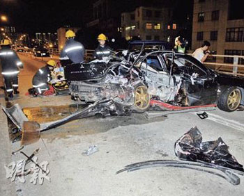 肇事跑車為三菱Evo VII跑車,警員事后發(fā)現(xiàn)跑車越線,現(xiàn)場遺下約20米的胎痕,正調查是否超速肇禍。與跑車迎面猛撼的私家車由朱姓24歲休班女警駕駛,朱某送院后情況穩(wěn)定,她通過酒精呼氣測試。