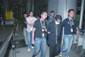 當(dāng)三人辦理晚上8時15分飛往印度尼西亞雅加達(dá)航班的登機(jī)手續(xù)時,一直暗中監(jiān)視的司警探員立即采取行動。探員發(fā)現(xiàn)三人利用腰封將毒品“冰”收藏在腰間,以及將包裝成棍狀的毒品藏在內(nèi)褲內(nèi)。探員在各人身上均搜獲近2公斤毒品“冰”,一共有5.4公斤,市值約210萬元。