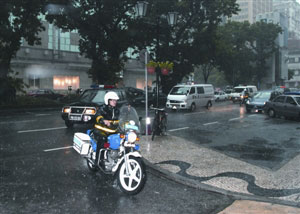 圖:歐文富夫婦由囚車冒雨送抵澳門初級法院聽判。(圖片來源:澳門日報)