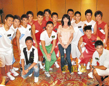 資料圖:五月八日,由香港無線電視舉辦的“2008香港先生選舉”活動(dòng)展開宣傳攻勢(shì),歷屆的"香港先生"與一眾年輕貌美的女藝員登臺(tái)公布詳情!跋愀巯壬边x舉將在八月二日舉行。 中新社發(fā) 洪少葵 攝