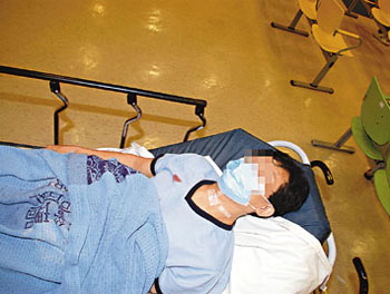 此時(shí),有人突然情緒激動(dòng),順手拿起臺(tái)上一柄20公分長(zhǎng)水果刀向妻子襲擊,直刺向她的喉嚨,藍(lán)某當(dāng)場(chǎng)受傷倒臥血泊中,男戶主疑畏罪以利刀自割頸部尋死。