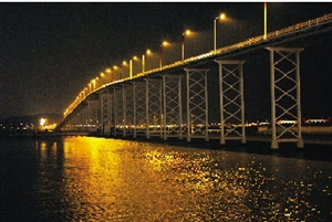 西灣大橋橋躉射燈未被盜去前,燈火通明。(圖片來源:澳門日報)