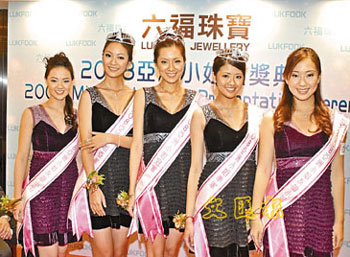 中新網(wǎng)12月11日電 據(jù)香港《文匯報(bào)》報(bào)道,五位新鮮“出爐”的亞洲小姐:冠軍姚佳雯、亞軍顏?zhàn)臃、季軍?lài)琳恩及兩位友誼小姐姚鳳鳳與林淑蓉,10日到香港北角珠寶首飾贊助商門(mén)巿領(lǐng)獎(jiǎng)。