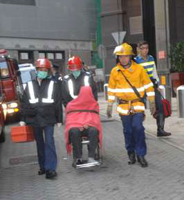 消防員接報(bào)趕到,在地面張開救生氣墊戒備,又派員上天臺(tái)嘗試走近游說,但事主一直情緒激動(dòng),無法收效。其妻子及女兒接獲通知趕到現(xiàn)場苦苦相勸,但不見效果,就在他與妻女傾談分神之際,在場消防員乘其不備撲前將他救返安全地點(diǎn),不致釀成悲劇。事主沒有受傷,后在妻女陪同下由救護(hù)車送往廣華醫(yī)院檢查。事件擾攘約半小時(shí)。