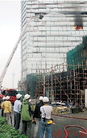 5日下午4時許,一號湖畔工地有工人發(fā)現(xiàn)酒店9樓有房間著火冒煙,立即報警。在消防未到達前,在該樓層工作的20多名工人立即逃走。大火產(chǎn)生的大量濃煙封鎖大樓梯間,并涌上更高的樓層,9樓以上工作的172名工人無法逃出,只有在25樓和40樓的防火層暫避,紛紛戴上口罩和用毛巾掩面,以防吸入濃煙。