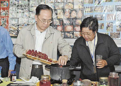 單是買食不能完全反映曾蔭權(quán)喜歡吃東西的性格。他在購物前先到區(qū)內(nèi)一個種滿蔬菜香草、由長者打理的園圃參觀。有人向他介紹一種可降血壓及降膽固醇的香草──洛神葵,曾蔭權(quán) 一聽到有助降膽固醇,便即刻將香草放入口,隨行人士還不及提醒他不可生吃香草,要經(jīng)烹調(diào)制成果醬才可食用,但為時已晚,曾蔭權(quán) 已經(jīng)將草吞落肚,大叫“好酸”!