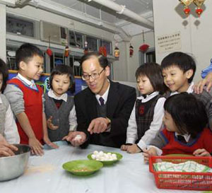 因應(yīng)該會慶祝三十五周年,曾德成特別送上一個大蛋糕,幼兒園內(nèi)的小朋友見到局長到來,也非常高興,十多名小朋友熱情地與曾德成一起制作愛心湯圓,并品嘗小朋友親手造的愛心湯團,分外喜悅。