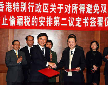 香港財經(jīng)事務(wù)及庫務(wù)局局長陳家強(qiáng)30日在北京,與國家稅務(wù)總局副局長王力簽訂《第二議定書》。這是內(nèi)地與香港及其它地區(qū)簽訂全面性避免雙重征稅安排或協(xié)定后,首次就修訂安排或協(xié)議的條款簽訂議定書,對于將來落實執(zhí)行安排或協(xié)議具有重要意義。