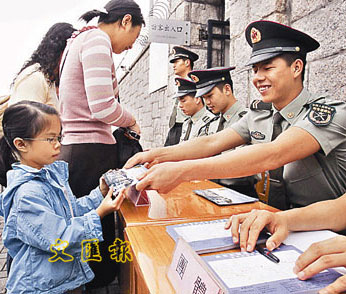 中新網(wǎng)4月28日電 據(jù)香港文匯報(bào)報(bào)道,五一勞動節(jié)當(dāng)天,市民再次有機(jī)會與解放軍駐港部隊(duì)作近距離接觸。解放軍駐港部隊(duì)27日晨在添馬艦、石崗及槍會山軍營派發(fā)一共8000張門票,吸引大批市民到場輪候,部分人更在取得門券后再排隊(duì)領(lǐng)取。