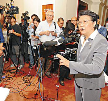 立法會主席范徐麗泰6月30日與立法會各黨派的代表會面,商討有關(guān)四川探訪團(tuán)的安排。會后范徐麗泰指,各黨派均同意按政黨在立法會擁有多少議席分配訪問團(tuán)的名額,認(rèn)為此分配方式遠(yuǎn)較以常設(shè)事務(wù)委員會主席作為訪問團(tuán)成員,更具有代表性。