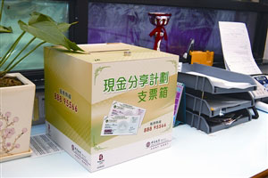 另一方面,澳門銀行界也配合“現(xiàn)金分享計劃”作好準備。其中,中國銀行澳門分行屬下25個分、支行均設(shè)立“現(xiàn)金分享計劃”開戶及兌票服務(wù)專窗、設(shè)置“現(xiàn)金分享計劃”支票箱。