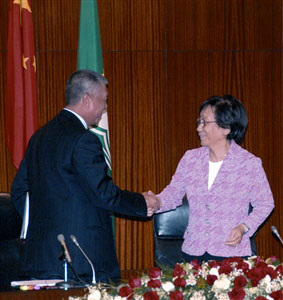 答問會結(jié)束,何厚鏵與曹主席握手。(圖片來源:澳門日報)