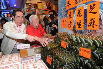 唐英年與多名官員及立法會議員到銅鑼灣的商店及餐館消費,鼓勵市民積極參與“促消費、保就業(yè)”行動。(圖片來源:香港特區(qū)政府網(wǎng)站)