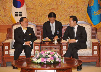曾蔭權(quán)和李明博歡迎兩地建立緊密關(guān)系,并就如何進(jìn)一步拓展彼此的聯(lián)系,進(jìn)行磋商。