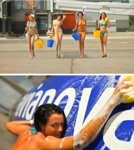 中新網(wǎng)7月1日電 據(jù)臺灣“東森新聞網(wǎng)”6月30日報道,俄羅斯航空公司Avianova為了吸引顧客,近日拍攝了一支兩分鐘的最新廣告,原本穿制服且形象端莊的4名空姐,以“風(fēng)騷“的姿態(tài)清洗飛機,“敬業(yè)”地只穿三點式比基尼展現(xiàn)誘人“濕身”。這段影片上網(wǎng)之后,讓網(wǎng)友大喊“我要去俄羅斯”!