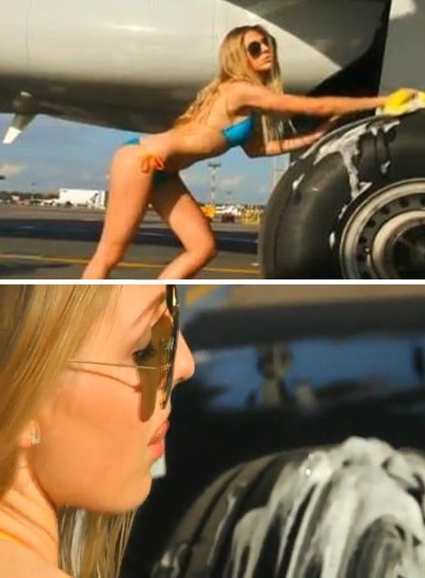 據(jù)報道,該航空公司不只以廉價為賣點,這次還大方拍攝很“豪邁”的宣傳片。只見鏡頭在這4名火辣空姐上游移,以下往上特寫又細又長的美腿,翹臀也在畫面中前很“搖擺”,她們時而展現(xiàn)美好身姿,時而拿起水槍“沖洗”飛機。