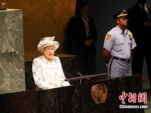 伊麗莎白二世今天作為英國、加拿大、澳大利亞等16個(gè)聯(lián)合國成員國的女王和擁有54個(gè)成員的英聯(lián)邦最高元首站在聯(lián)合國大會(huì)會(huì)場演講。