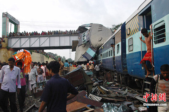 兩個月前,一列由東部西孟加拉國邦首府西加爾各答開往西部大城市孟買的快速客運火車,駛至加爾各答以西約150公里的一條小鎮(zhèn)時,13節(jié)車廂突然出軌,一列貨運火車迎面駛至,把客車其中4節(jié)車廂撞至嚴重變形扭曲,造成145人死亡。