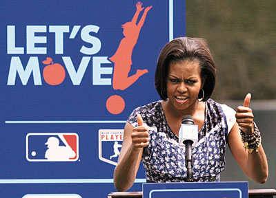 米歇爾近期頻頻在公眾前現(xiàn)身,推動(dòng)超重兒童多做運(yùn)動(dòng),她上周現(xiàn)身巴爾的摩籃球場(chǎng),獲得現(xiàn)場(chǎng)大批學(xué)童鼓掌及歡呼支持。難怪有資深民主黨軍師指出,“奧巴馬令人動(dòng)怒;米歇爾令人歡容!